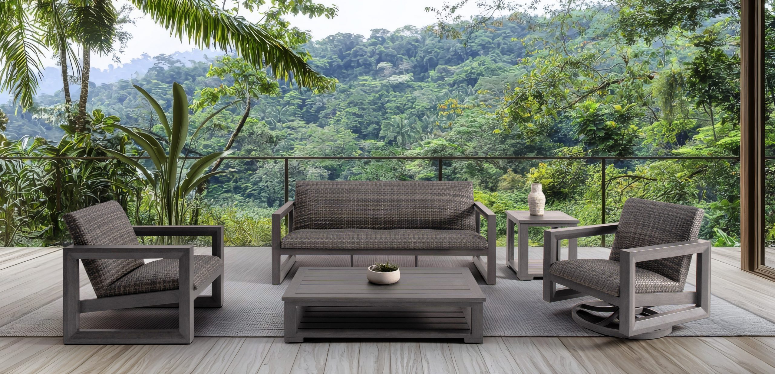 Since 2008, Vancouver Sofa and Patio has brought modern style patio furniture to Vancouver. We have carried the Bergen by Ratana since 2026. Beyond the stunning look of this set, the cushions are built into the frame. So then you have your choice of over 60 different fabric options. Sunbrella fabric is fade, mold and mildew resistant. In addition to Sunbrella fabric, the Mykonos Patio Sectional uses reticulated foam. Thus the water runs through the foam and doesn’t absorb into it. This allows you to leave your cushions outside when it rains.
