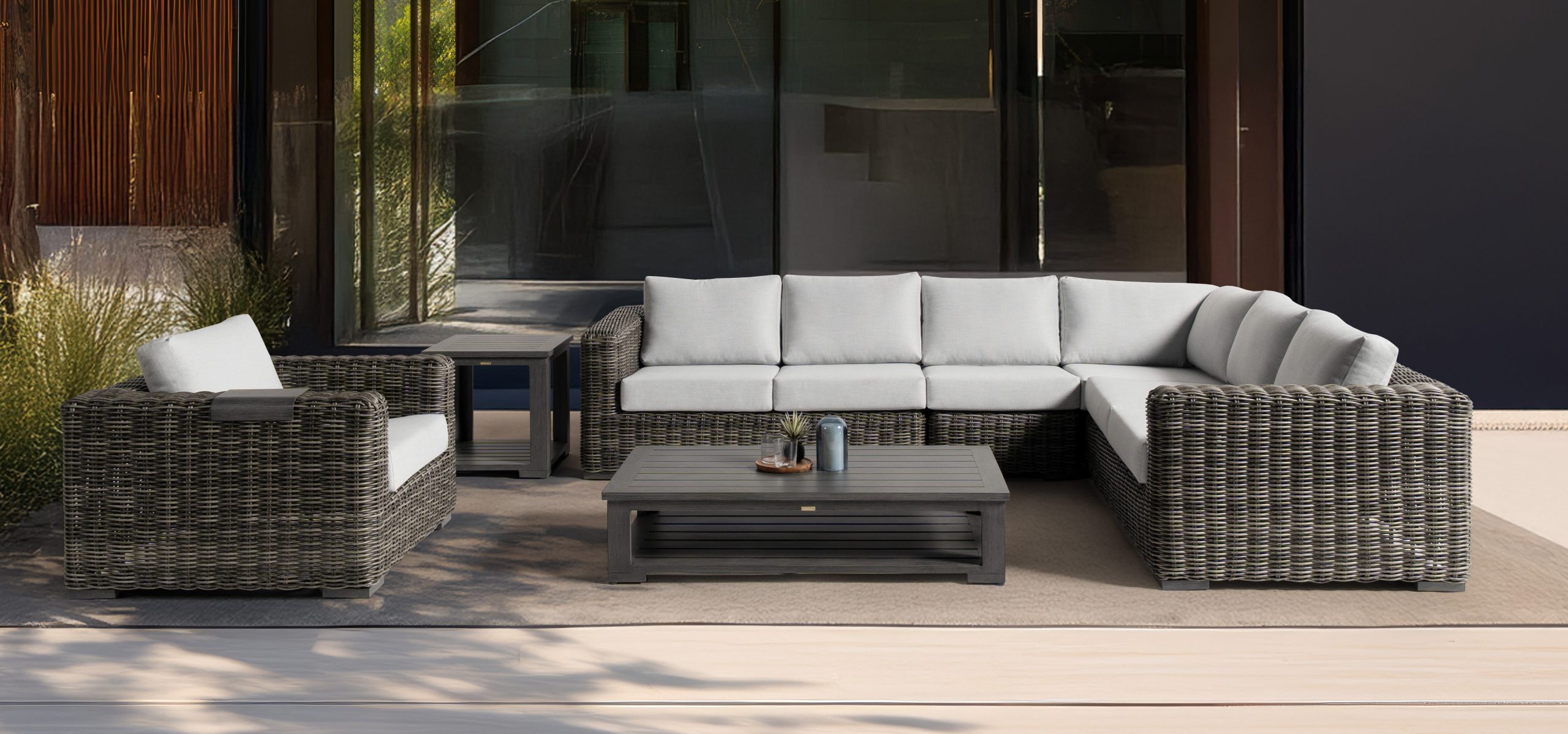 Since 2008, Vancouver Sofa and Patio has brought modern style patio furniture to Vancouver. We have been carrying this collection since 2014. Beyond the stunning look of this set, the cushions are made in Vancouver. So then you have your choice of over 200 different Sunbrella fabric options. Sunbrella fabric is fade, mold and mildew resistant. In addition to Sunbrella fabric, the Vilano Ratana uses reticulated foam. Thus the water runs through the foam and doesn’t absorb into it. This allows you to leave your cushions outside when it rains.