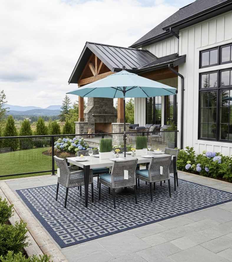 Since 2008, Vancouver Sofa and Patio has brought modern style patio furniture to Vancouver. We have been carrying the Genval dining collection since 2019. Beyond the stunning look of this set, the cushions are made in Vancouver. So then you have your choice of Sunbrella fabric options. Sunbrella fabric is fade, mold and mildew resistant. In addition to Sunbrella fabric, the Genval Dining Table Ratana uses reticulated foam. Thus the water runs through the foam and doesn’t absorb into it. This allows you to leave your cushions outside when it rains.